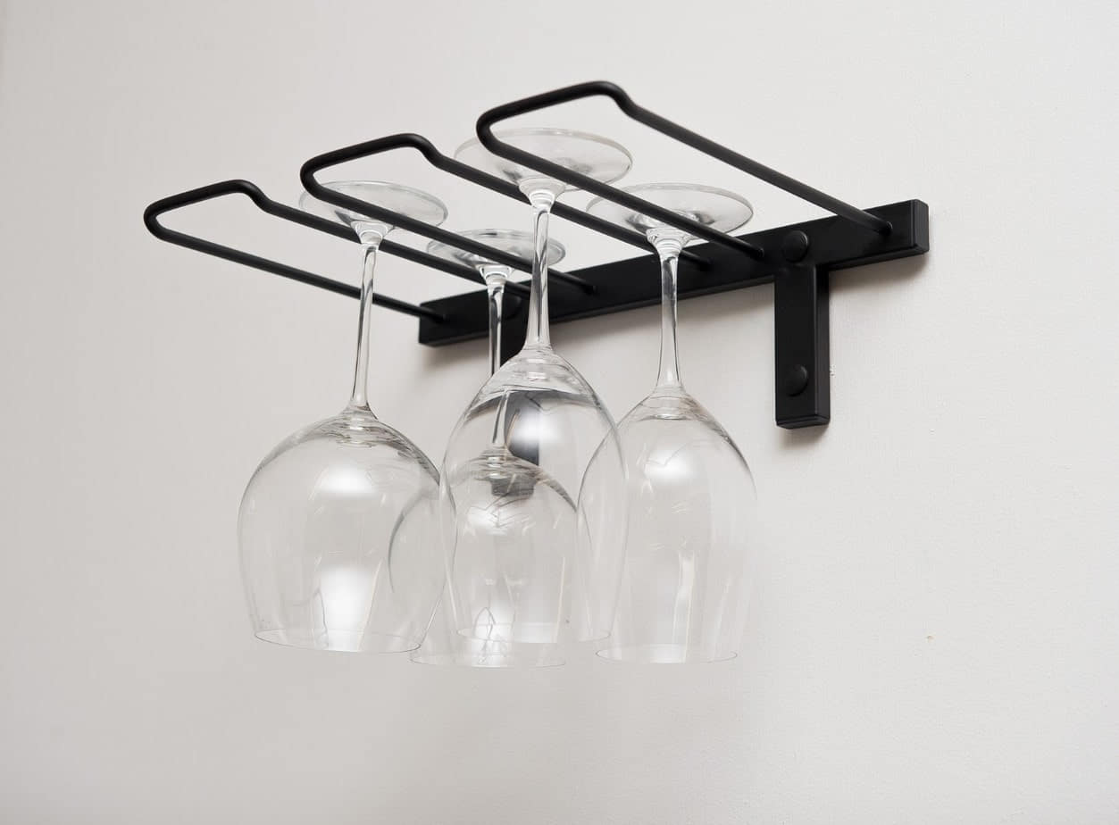 Een 4 wijnglazenrek dat het ontwerp van elke muur, kelder of ruimte verbetert door het opnemen van uw prachtige wijnglazen.