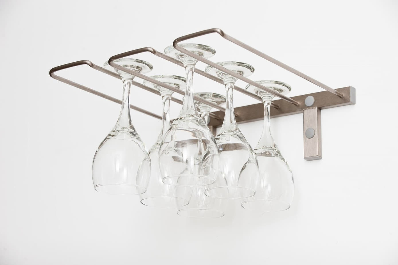 Een 4- tot 6- wijnglazenrek dat het ontwerp van elke muur, kelder of ruimte verbetert door het opnemen van uw prachtige wijnglazen.