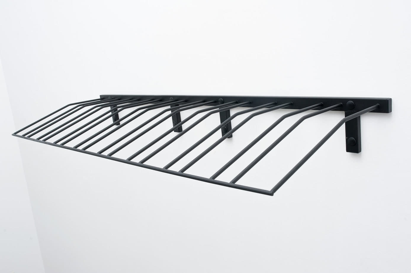 Bij het zwart metalen wijnrek voor aan de muur Horizon worden de flessen niet onder elkaar getoond maar naast elkaar. Dit type is dan ook bedoeld om extra belangrijk wijnen uit te lichten of om af te wisselen met de overige wijnrekken. Vanwege het modulaire systeem kunnen deze moeiteloos worden gecombineerd met de “Nine”-serie. De strakke afwerking in combinatie met het robuuste materiaal maakt dit tot een bijzonder fraai wijnrek zowel geschikt voor bij u thuis als in uw restaurant of wijnkelder. Verkrijgbaar in twee finishes (Satin Black en Platinum) en inclusief bevestigingsmateriaal. Gratis verzonden.
