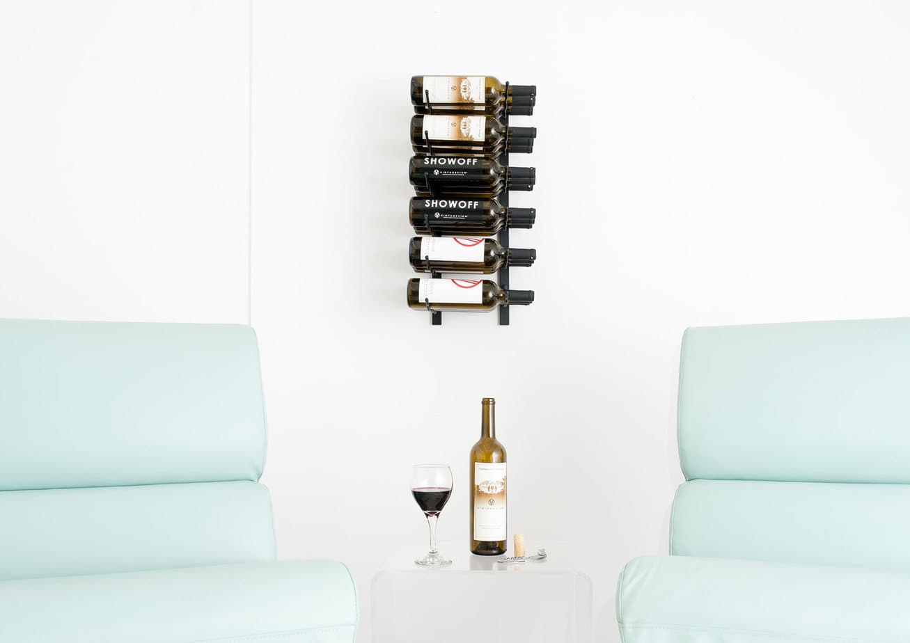 Presenteer de mooiste flessen wijn aan uw gasten in uw restaurant of woonkamer met dit stijlvolle wijnrek. De Triple Six biedt ruimte aan 18 flessen in 6 rijen van 3 diep. Het sterke rek is gemaakt van hoogwaardig metaal en afgewerkt in een Satin Black kleur. Een chique decoratie waarmee u ook nog eens ruimte bespaart. U betaalt geen verzendkosten. Het rek wordt bovendien verstuurd inclusief bevestigingsmateriaal.